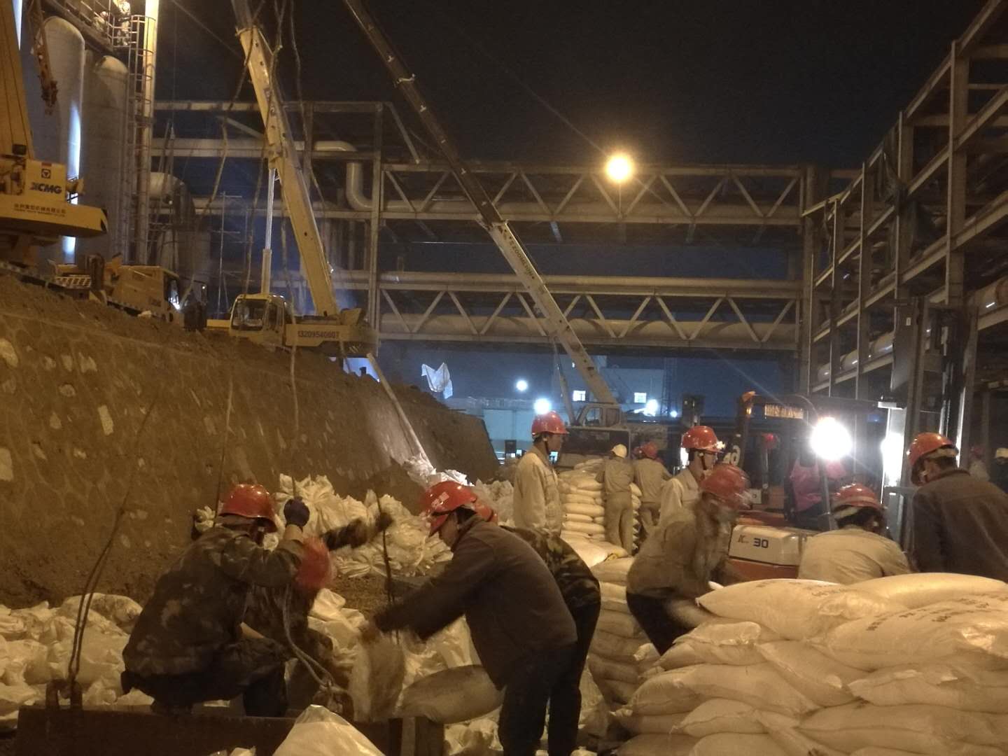 7月4日中午12時(shí),連續(xù)幾天的陰雨天終于暫停,盡管天公不作美,烏云密布,隨時(shí)會下雨,但對奮戰(zhàn)在廣拓化工一線的檢修者們來說,雨住了就是最好的消息。因?yàn)闆Q定化工系統(tǒng)能否按時(shí)開車的關(guān)鍵項(xiàng)目,本次計(jì)劃檢修的重頭戲--乙炔干燥更換吸附劑工作終于能開始了。“趕快安排吃飯,抽調(diào)一切力量,13時(shí)準(zhǔn)時(shí)到場協(xié)助檢修,我們要與天氣賽跑,趕在下雨前完成乙炔干燥吸附劑的填充工作。”隨著化工公司總經(jīng)理賈存富的一聲令下,各裝置、科室應(yīng)聲而動,積極組織人員參與到檢修工作中,一場與天氣賽跑的搶修大戲開始了……