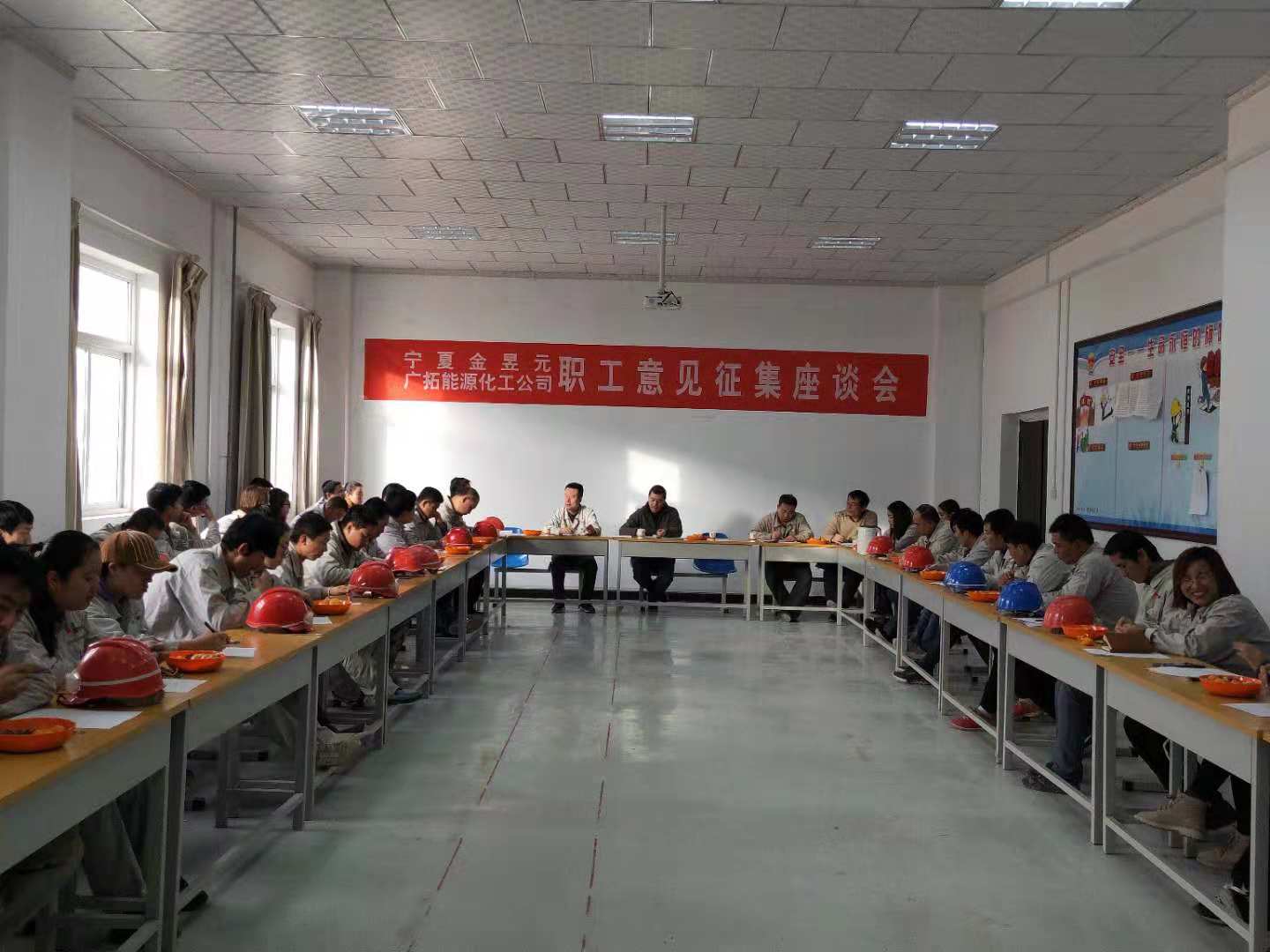 集團公司工會、固原片區(qū)工會相關(guān)領(lǐng)導、化工公司裝置長以上管理人員及職工代表近100余人參加了會議。