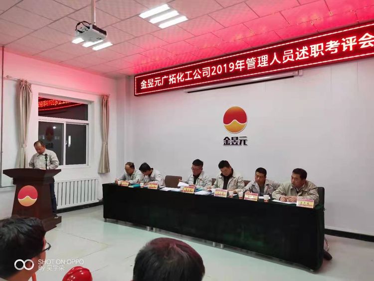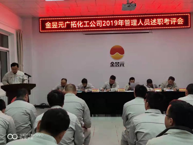 2019年11月19日—20日,廣拓化工公司利用下班時間組織召開了2019年度管理人員述職考評會,會議由興昊黨支部副書記王志杰主持,化工公司總經理,副總經理,安全總監,副總工程師出席,32名述職人員及110名職工代表參加。