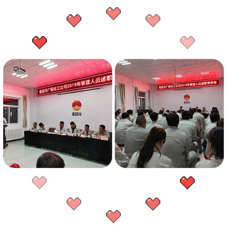 述職考評結束后,化工公司總經理賈存富講話,希望全體化工人員以認真、誠懇的態度分析自己的工作,并要求大家繼續保持艱苦奮斗,精誠團結的作風,繼續發揚過去工作中的優點,汲取經驗,摒棄不足,滿懷信心,以更清醒的頭腦,更旺盛的斗志向2020年的既定目標前進。