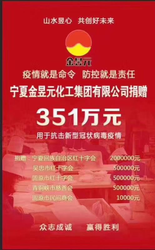 一方有難,八方支援是中華民族自古以來的優(yōu)良傳統(tǒng)。如今我們正處于疫情防控關(guān)鍵期,社會(huì)各界都在積極統(tǒng)籌調(diào)配資源。寧夏金昱元化工集團(tuán)也不甘落后,相繼向自治區(qū)、吳忠、青銅峽、固原捐款351萬元,向社會(huì)各界捐贈(zèng)近千噸消毒液。