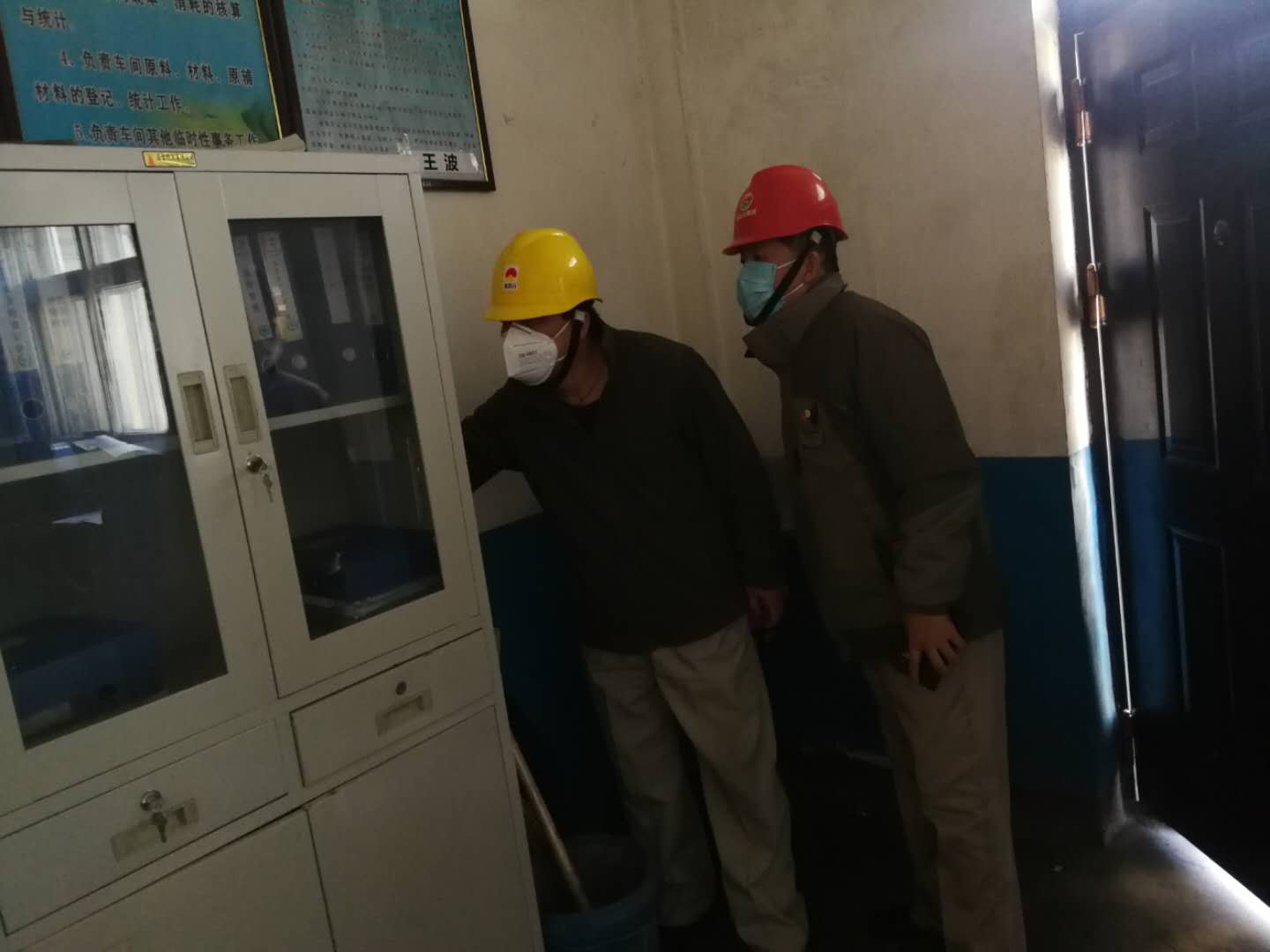 每到一個裝置,檢查人員都會詳細的詢問人員測溫情況以及辦公用品的消毒情況。王總強調:“一定要嚴格執行各項防疫規定,杜絕疫情蔓延途徑,保障員工安全”。從南大門到原料裝置,從電石爐到化驗室,從成品裝置到生料裝置,檢查人員的腳步踏遍了資源再生公司的每一個值班室和辦公室,真正無死角的對疫情防控工作做了檢查。