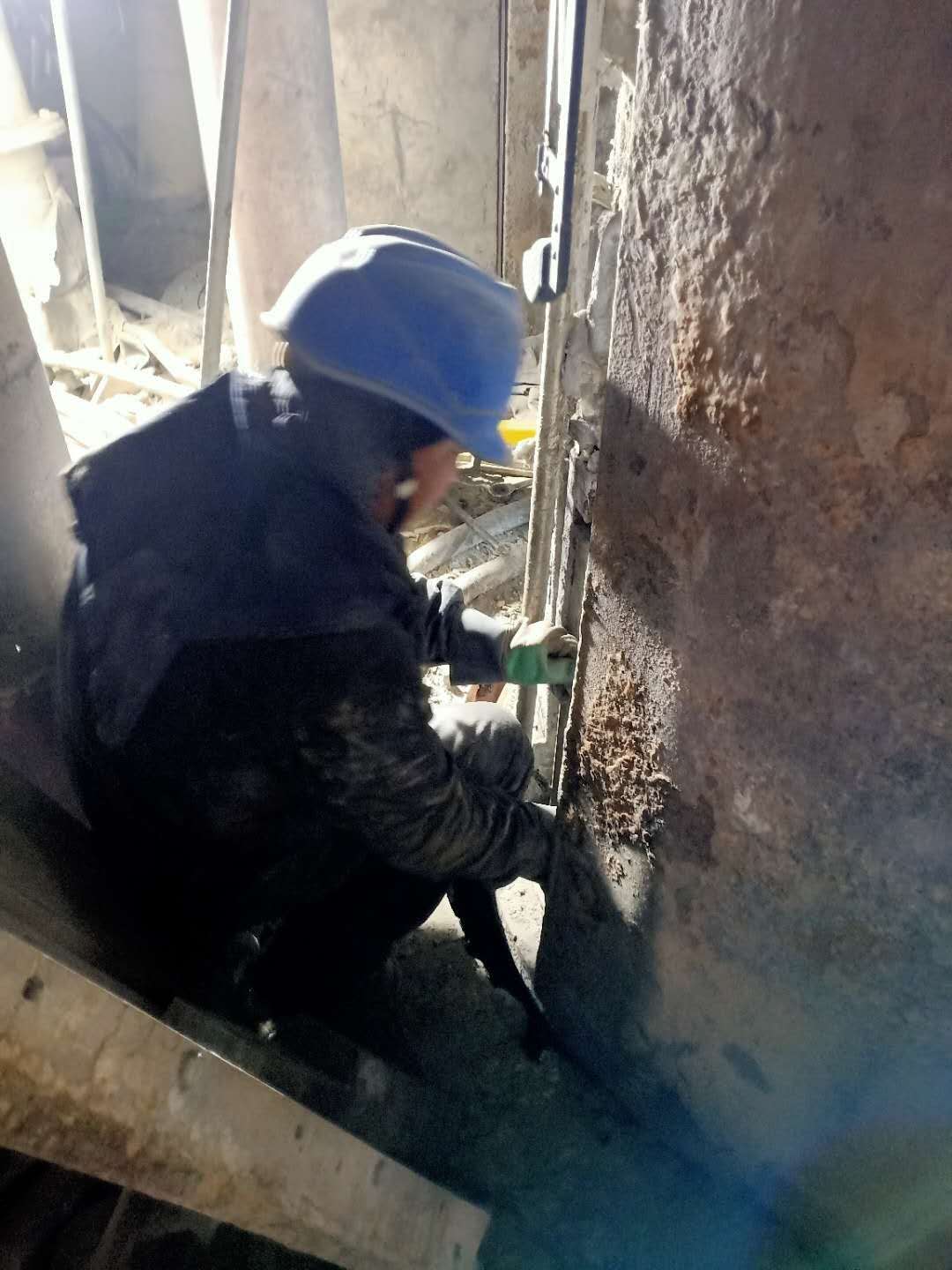 走進電石爐檢修現場,參與檢修的同事們或蹲或站,手上不停的忙碌著。管理人員放棄休息堅守檢修現場,確保現場無違章作業現象。狹小的檢修空間,一個人蹲在那兒來回動一下都有點困難,可維修工絲毫不受影響,專注的眼神緊盯手中的檢修工具,不允許自己出一丁點兒差錯。