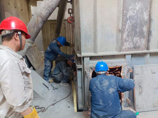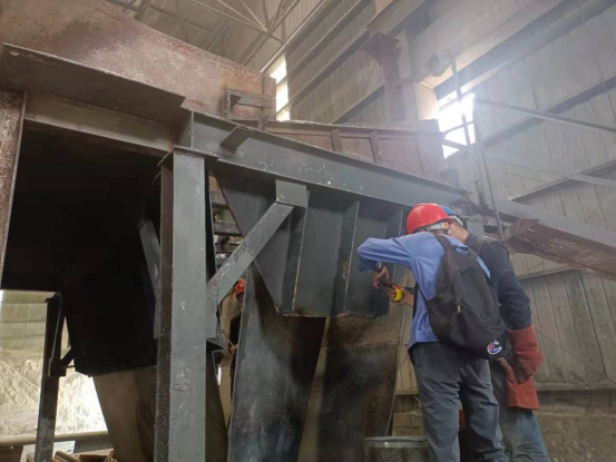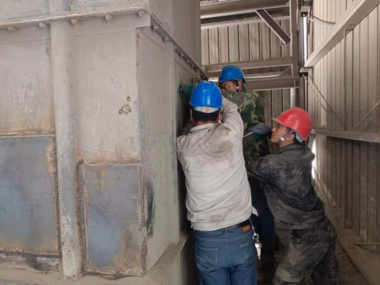 8月9日—11日,在1101皮帶電石渣上料口技改現(xiàn)場,同水泥磨檢修相比,這里由于上料環(huán)境,環(huán)境密閉、空氣不對流,狹小的空間,為了趕進(jìn)度,提高技改質(zhì)量,這讓檢修工人更加需要具有更強的團(tuán)結(jié)協(xié)作精神,他們在技術(shù)員的指揮下,分割、配對、焊接……生產(chǎn)裝置負(fù)責(zé)人丁伏山同志告訴大家:化工目前降負(fù)荷運行,大家要咬緊牙關(guān)、克服困難,盡快完成技術(shù)改造項目,盡早投入生產(chǎn)。在現(xiàn)場他是指揮員又是戰(zhàn)斗員,每一個細(xì)節(jié)他都結(jié)合經(jīng)驗,進(jìn)一步對現(xiàn)場改造完善再完善,帶領(lǐng)員工經(jīng)得住高溫的“烤驗”,經(jīng)得住連續(xù)作戰(zhàn)的勞累,于8月11晚20:30分,嚴(yán)格按工藝流程要求,完成此項技改項目,控制了下料的均勻性和連續(xù)性,確保了烘干破系統(tǒng)溫度和配料的穩(wěn)定性。