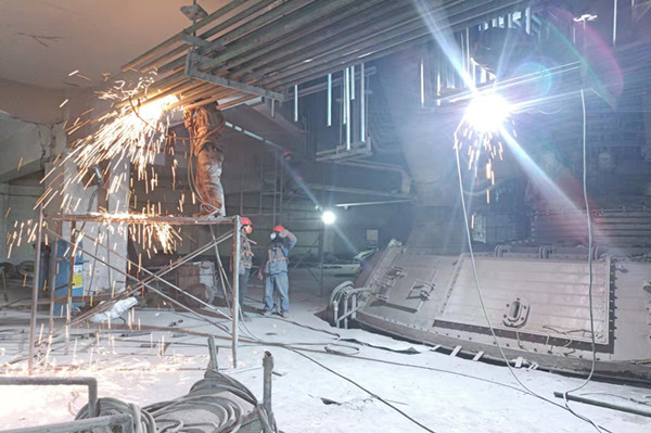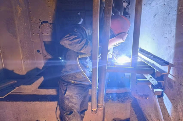在檢修現(xiàn)場,我們的檢修工人身系安全帶,手拿焊鉗,蹲在狹小的空間,焊接水管,耗時耗力,唯有飛濺如麥穗的焊花展現(xiàn)著他們的顏色,魚骨似的焊縫是他們驕傲的成果。同時在檢修過程中也伴隨著灰塵飛揚和各種安全隱患,但在我們檢修工人的臉上沒有看見沮喪的表情,看到的是檢修工人汗水浸透的后背,沒有休憩,只有投入;看到的是檢修工人一張張布滿灰塵的臉頰,沒有怨言,只有投入。在這里你可以看到那一個個無比堅毅的目光,感受到他們內(nèi)心滿滿的自信和他們愛崗敬業(yè)、無私奉獻、不畏艱辛的精神;他們攜手共進、分工合理、工作有序,只為創(chuàng)造安全的檢修環(huán)境;他們?yōu)樘崆巴瓿蓹z修任務(wù)加班到深夜,工作時間長、工作量大,不辭辛勞,沒有任何怨言,充分展現(xiàn)了“團結(jié)、拼搏”的企業(yè)精神。