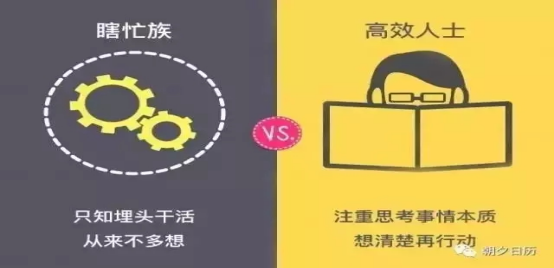 瞎忙族經(jīng)常看起來好像很有執(zhí)行力,接到任務(wù)說干就干,風(fēng)風(fēng)火火的。但是經(jīng)常干到一半,發(fā)現(xiàn)方向錯(cuò)了!一切又得推倒重來,反反復(fù)復(fù),效率低不說,還浪費(fèi)公司資源。而高效的人不僅能埋頭干活,也非常注重抬頭看路。行動(dòng)之前,花必要的時(shí)間想清楚問題的本質(zhì)是什么,怎么做最合理,有沒有更優(yōu)的方案?低效率和無用功是他們極力避免的。