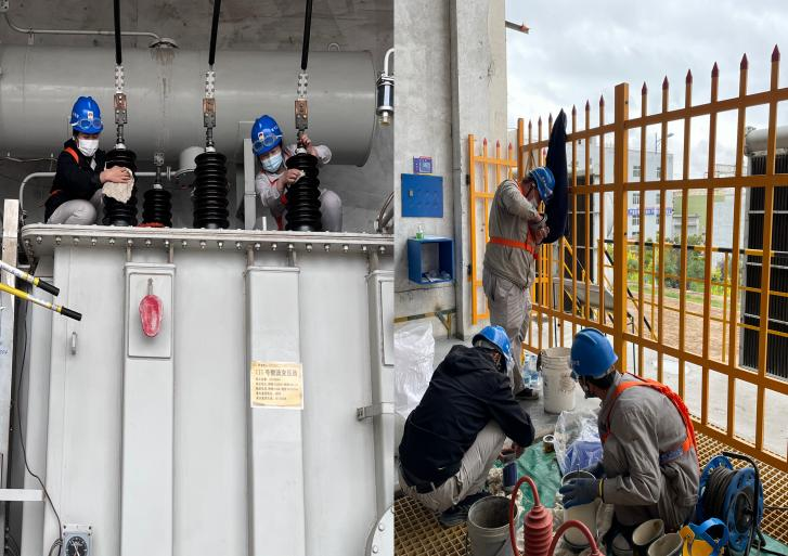 一切準備工作就緒,首先整流現場對變壓器進行放電、驗電掛接地線,螺絲緊固除塵及硅膠更換,俗話說的好,誰說女子不如男,這次顯然不同的是,由女生進行此次變壓器的檢修工作,雖然辛苦,但這是鍛煉我們的機會,是學習增長知識的機會,因此再苦再累也必須堅持。