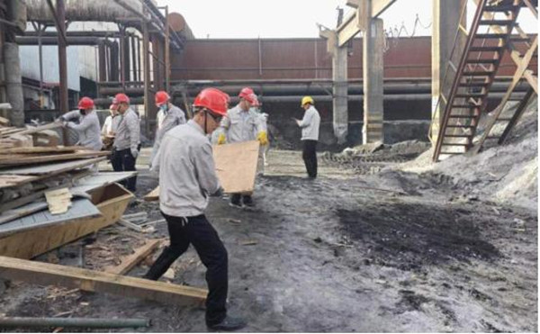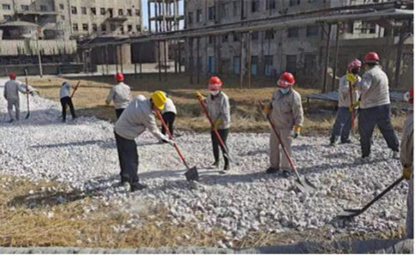 參與勞動的人員發(fā)揚(yáng)不怕苦、不怕累、不怕臟精神,三五成組、互相配合、分工明確、齊心協(xié)力,搬運(yùn)雜物木板、揮鍬坪土鏟草、清理鐵皮及塑料板,活動現(xiàn)場熱火朝天。經(jīng)過一上午緊張有序的勞動,99%堿廠房周邊堆砌的雜物、雜草及亂堆放物品都被清理干凈,生產(chǎn)現(xiàn)場環(huán)境恢復(fù)了往日的整潔。