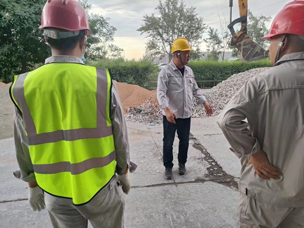 此次路面修補采用水泥、砂石貫入式修補工藝,為嚴格質量管理,公司總經理深入項目現場監督落實修繕材料工藝配比情況;相關負責人為確保施工現場人員及預埋設施安全,對參與施工破碎操作人員進行崗前培訓和三級安全教育,對協助施工人員進行技術交底,壓實各級人員職責、人員分工明確,為徹底消除廠區道路存在的安全隱患,確保廠區原料車輛及職工車輛行駛的舒適度和穩定性,減少事故的發生,改善職工出行環境,維護干部職工的切身利益,公司干部職工頭頂烈日,井然有序展開著道路修繕工作。