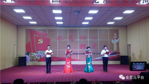 會后,以“不忘初心跟黨走”為主題,舉辦了慶祝建黨97周年文藝演出,演出圍繞“頌歌獻(xiàn)給黨”這一主要演出內(nèi)容,以歌舞、大合唱、詩朗誦、四重唱為主要表現(xiàn)形式,還自編創(chuàng)作了小品《我想入黨》,音樂快板《幸福金昱元》,營造了歌頌黨、歌頌人民、歌頌改革開放和企業(yè)發(fā)展取得的偉大成就,暢想新時(shí)代、中國夢。