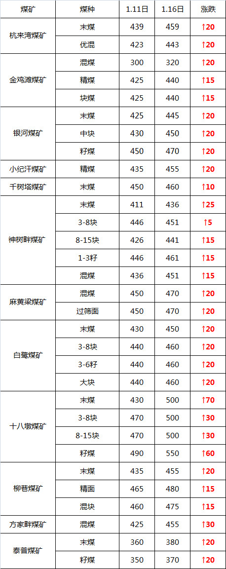 據榆林煤炭交易中心數據統計,與1月11日相比,目前榆林的在產煤礦價格漲幅最高達到了70元/噸。