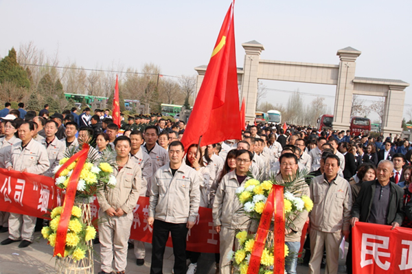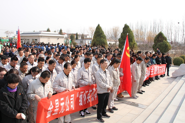 烈士紀念碑巍然聳立,烈士陵園內莊嚴肅穆,公司黨員代表在烈士紀念碑前,整齊列隊、靜默肅立;顒訌恼犆C立、行注目禮開始,集團公司黨委副書記王立軍宣布祭掃活動開始,并代表公司向烈士紀念碑敬獻花籃,參加活動全體人員默哀一分鐘。全體黨員重溫了入黨誓詞,共同學習了革命烈士的英勇事跡。