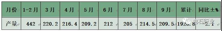 據國家統計局數據顯示:9月國內電石產量為209.5萬噸,同比下降7.1%;1-9月累計產量達到1928.8萬噸,同比下降2.1%;據統計,產能有效發揮率63%(除去長期停產、半停產的1000萬噸,產能有效發揮為83%)。據我會統計:產能前十位的集團公司1-9月份完成電石產量為982萬噸,同比增長1.9%;20萬噸以上企業72家1-9月份完成產量約為1871萬噸,同比增長0.92%。