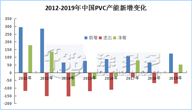 2.2 2012年-2019年中國聚氯乙烯產能變化圖
