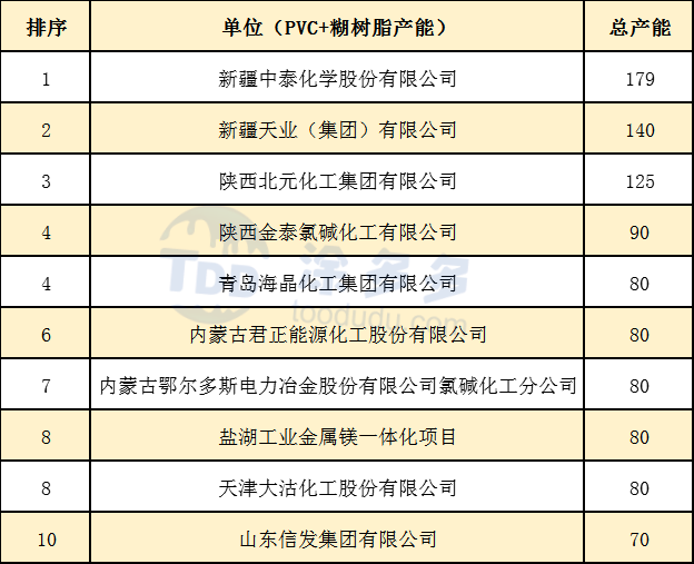 2.3 2019年最新生產企業產能前十排名