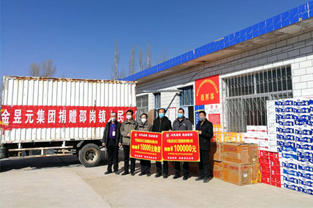 16日上午,春寒料峭,集團(tuán)公司黨委副書記兼工會(huì)主席王立軍、工會(huì)副主席李新、集團(tuán)公司辦公室主任朱公平等將10萬元捐款和價(jià)值1萬元物資捐贈(zèng)給邵崗鎮(zhèn)政府時(shí),青銅峽市副市長張克寧、邵崗鎮(zhèn)鎮(zhèn)長梁才等同志向金昱元集團(tuán)表示感謝。