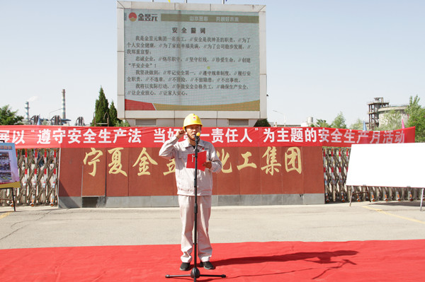 今年6月份是全國第21個“安全生產月”。今年的活動主題是“遵守安全生產法,當好第一責任人”。6月1日,寧夏金昱元化工集團股份有限公司分別在青銅峽片區和固原片區舉行“安全生產月”活動啟動儀式。