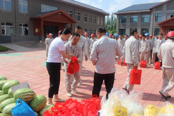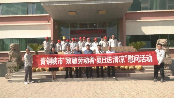 青銅峽市總工會和固原經(jīng)濟開發(fā)區(qū)總工會為集團公司送來西瓜、礦泉水、金絲菊、冰糖等防暑物品,表達(dá)對企業(yè)一線員工關(guān)心和厚愛。