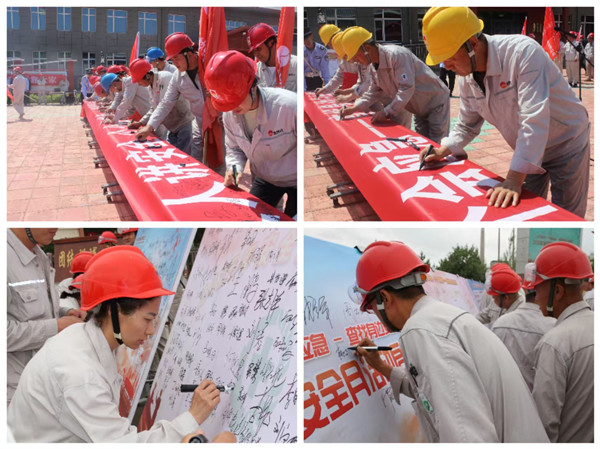 大家在簽字版上簽下自己的姓名,鄭重承諾,將牢固樹立安全意識,以身作則、嚴以律己,嚴格規范安全行為,防止各類事故發生,共同維護公司安全穩定局面。