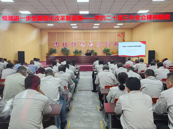 為深入學習貫徹黨的二十屆三中全會精神,切實把思想和行動統一到全會決策部署上,促使黨員干部認真領會習近平總書記關于全面深化改革新思想、新觀點、新論斷,深刻把握改革主題、重大原則和舉措,6月6日,寧夏金昱元化工集團股份有限公司黨委組織開展“繪就進一步全面深化改革新藍圖——黨的二十屆三中全會精神解讀”主題黨課學習。本次黨課由中共吳忠市委黨校鄭自明教授主講。