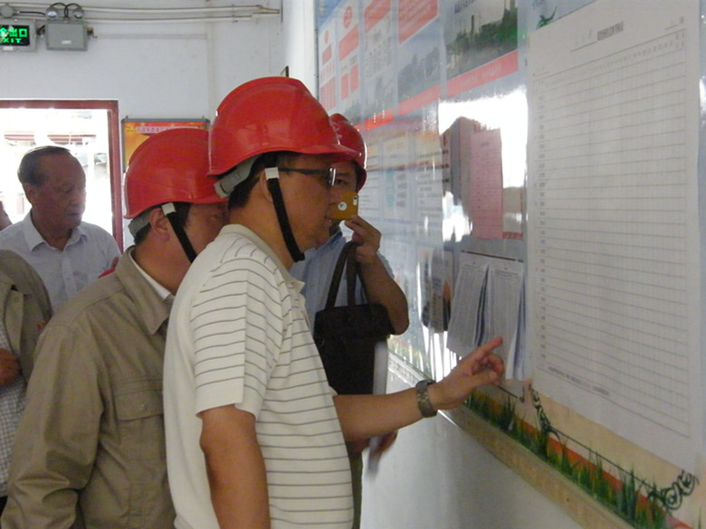 全國總工會民主管理部部長楊漢平深入生產一線查看廠務公開資料